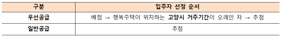 - 우선공급 : 배점 -> 추첨