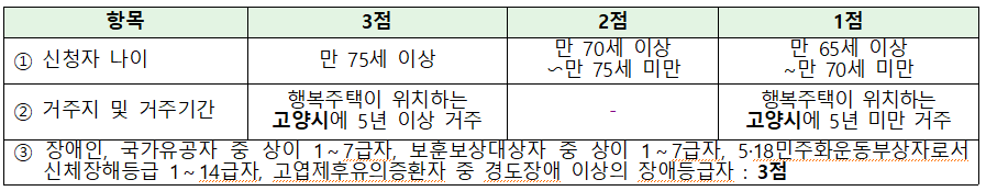 ○ 경쟁 시 입주자 선정기준